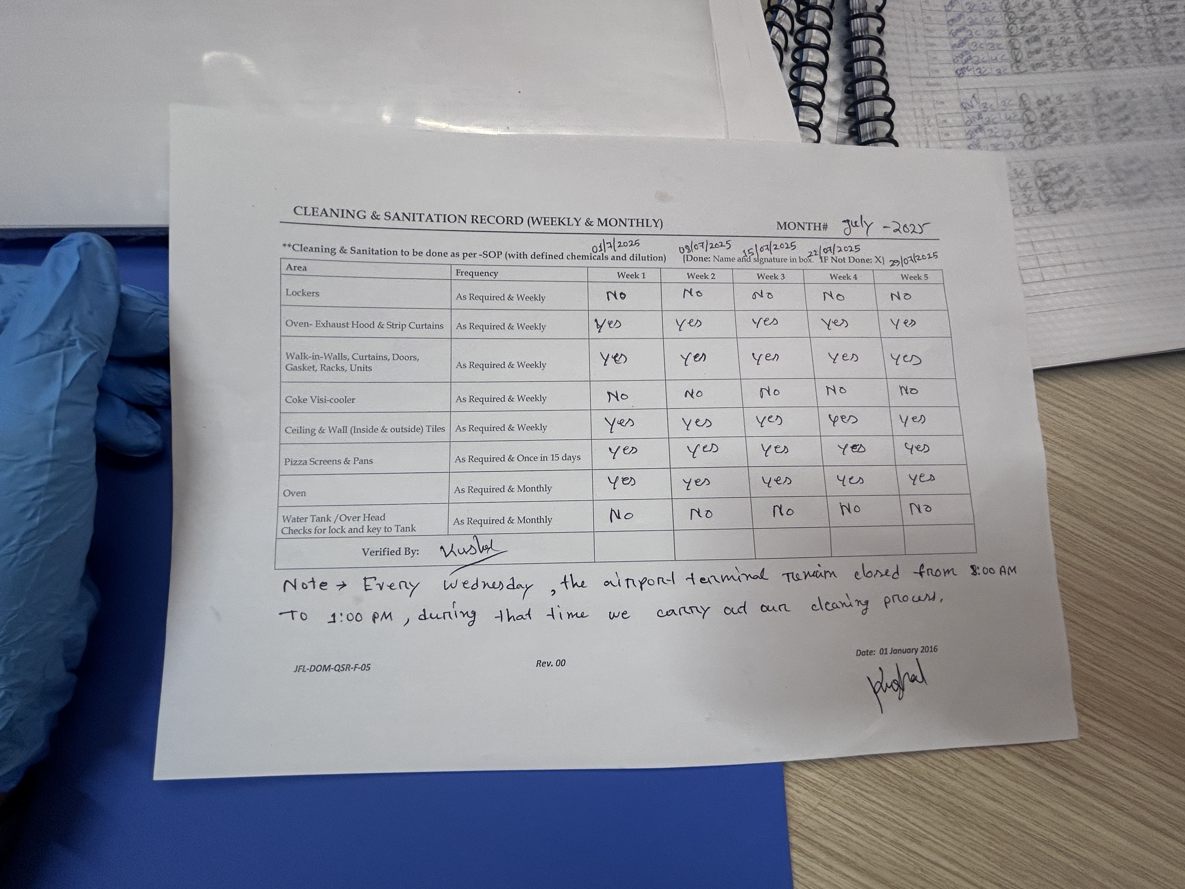 Cleaning of equipment, food premises is done as per cleaning schedule & cleaning programme. There should be no stagnation of water in food zones. |