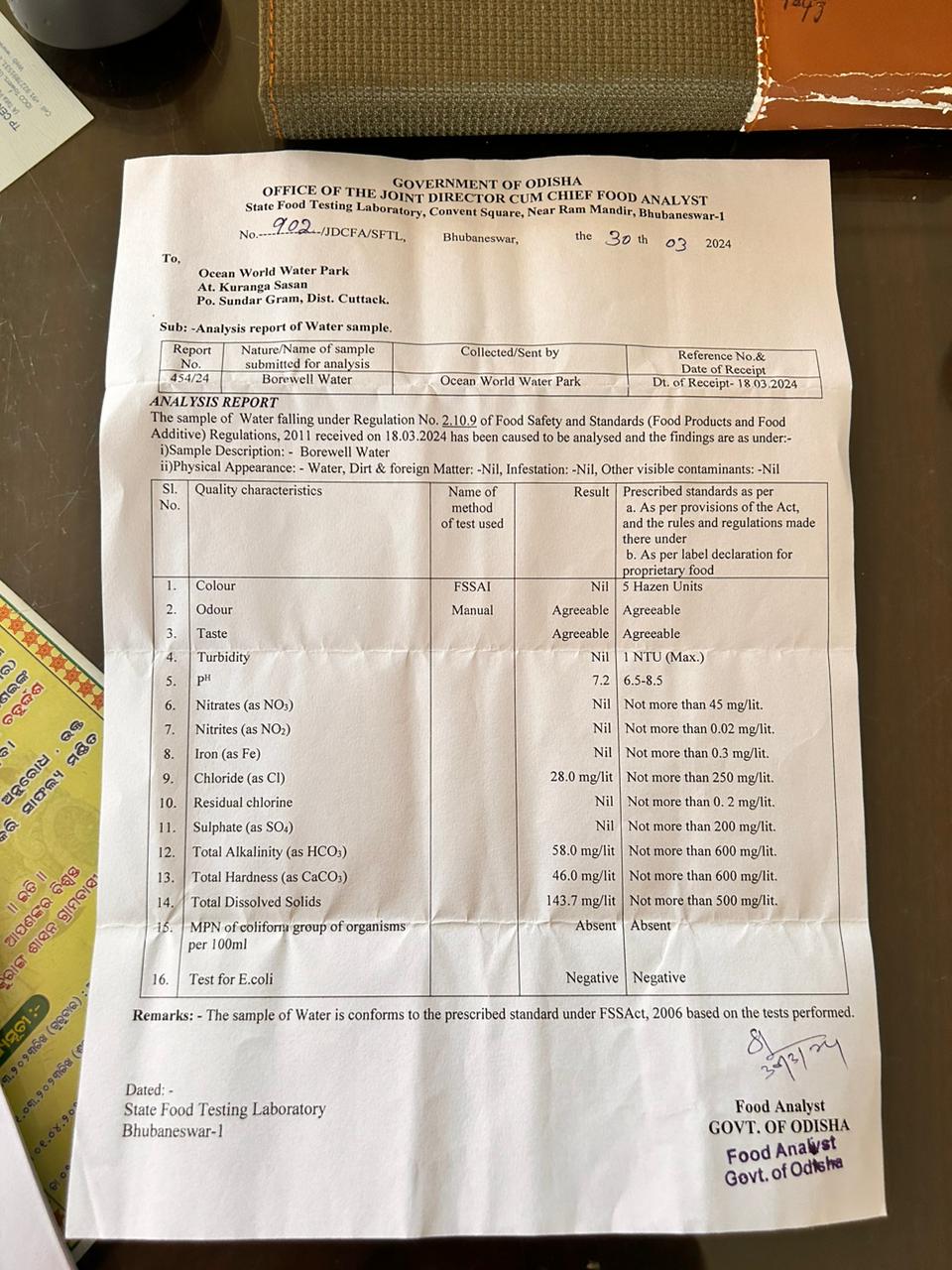 Food material is tested either through internal laboratory or through an accredited lab. Check for records. |
